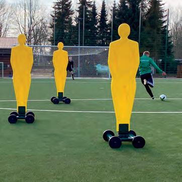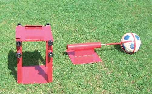 This trolley allows free kick practicing by simulating jumping defenders