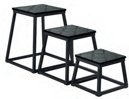 Set of 3 plyometric platforms with 3 different heights: 30 cm., 45 cm. and 60 cm. anti-skid coating on top and rubber pads under each platform for added safety. Stackable for practical storage pag. 164 pag. 70