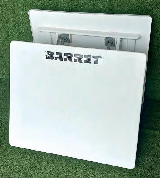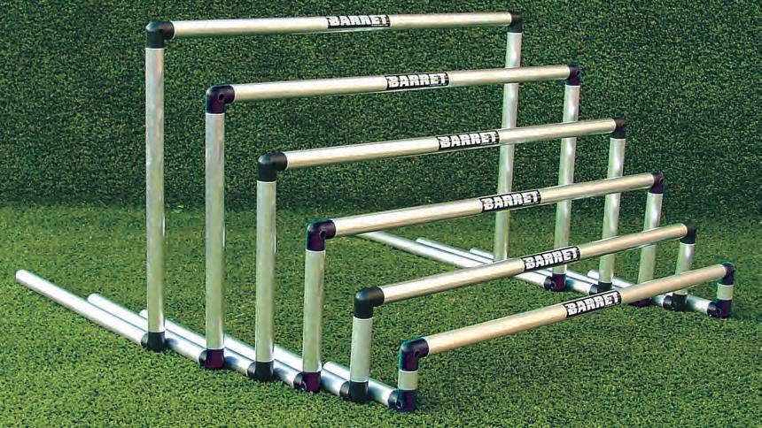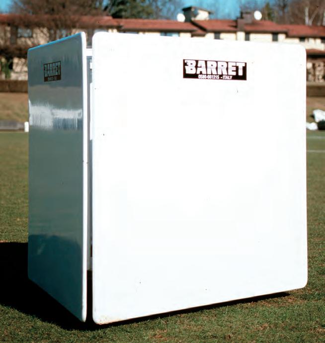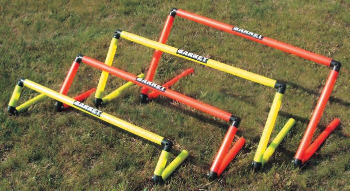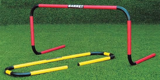 Barret manufactures products such as mannequins, hurdles, markers, cones, slalom poles, shooting arcs, soccertennis kits, heading trellises, all kinds of fiberglass and net rebounders, sledges, vaulting boxes, equilibrium boards, any size goals and mini goals.