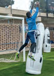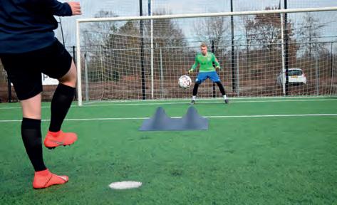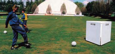 Il carrello regolabile in altezza permette di simulare la presenza di giocatori in barriera che saltano al momento del calcio di punizione