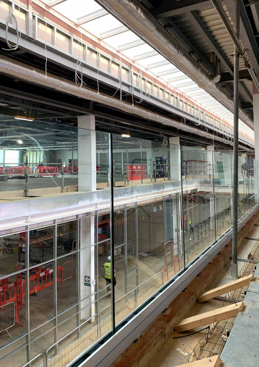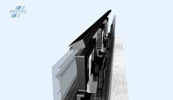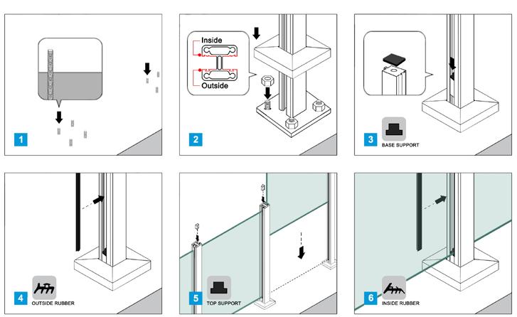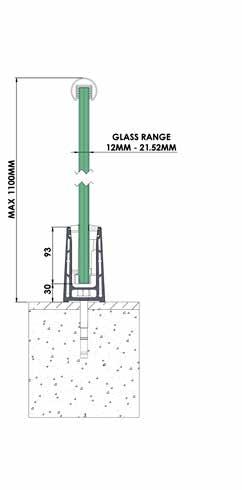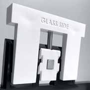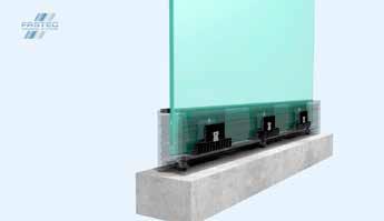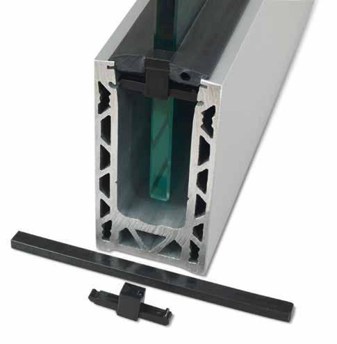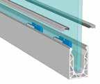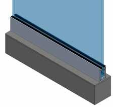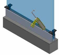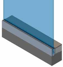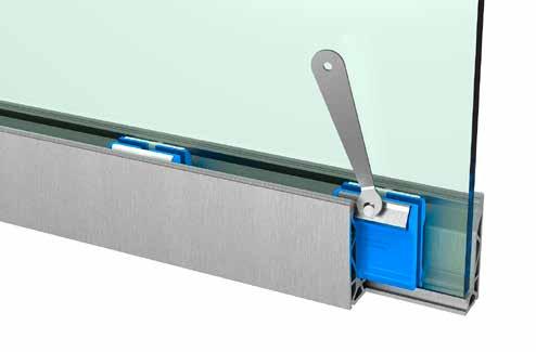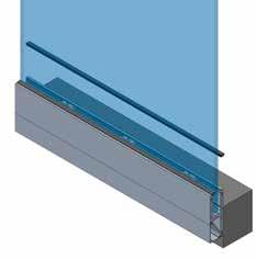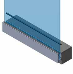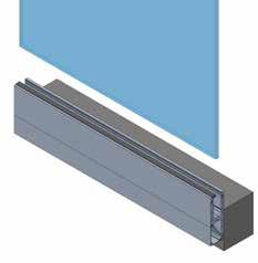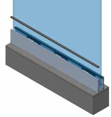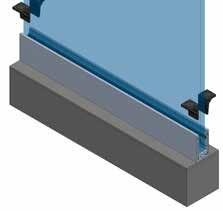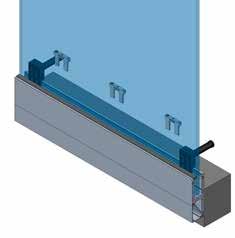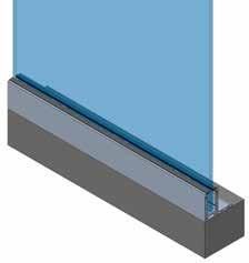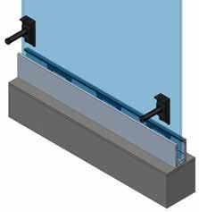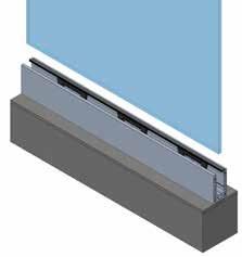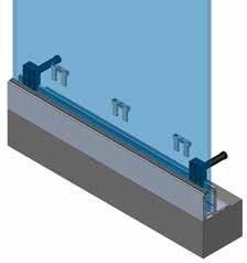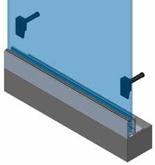 The glass slip clamps need to be placed on the bottom of the glass. This requires lifting the glass off the floor sufficiently or applying to the top of the glass and rotating into the channel. The slip clamps require spacing so that four are used per metre. The clamps placed on either end of the glass should be located 125mm from the edge of the glass and then 250mm centres. The glass can now be placed into the channel.