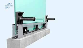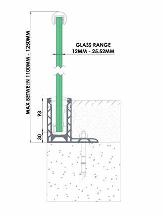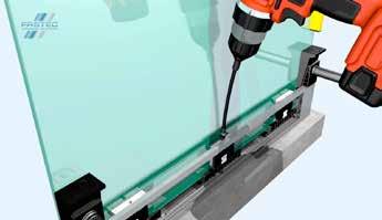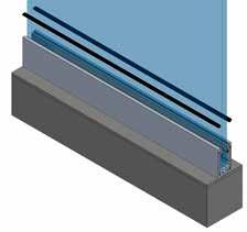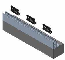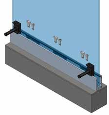 The aluminium base rail should be placed onto its designated position and the holes marked onto the substrate for drilling. The channel should then be levelled and lined up with the use of shims. Once the shoe is plumb and level, the fixings should be tightened up to make the channel rigid. The fixings must be tightened in accordance with the manufacturers instructions.