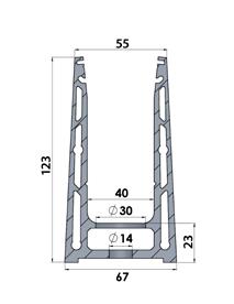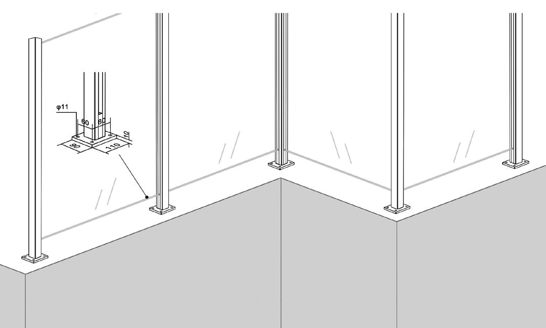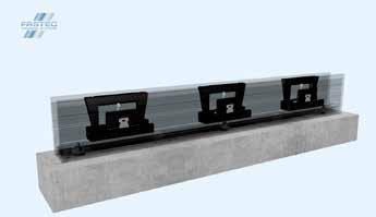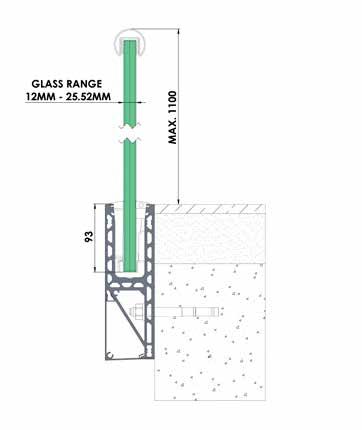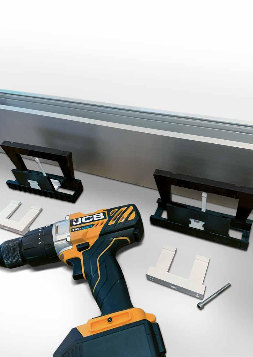 The aluminium base rail should be placed onto its designated position and the holes marked onto the substrate for drilling. Once the shoe is level, the fixings should be tightened up to make the channel rigid. The fixings must be tightened in accordance with the manufacturers instructions.