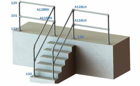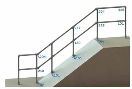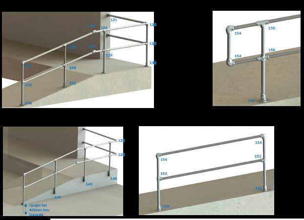 The following handrail sections can be utilised to create a hand or knee rail to any required angle.