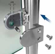 Once the glass is fitted in place, you now need to place the clamp bars into the top of each glass slip clamp. First you must screw the bolt into the clamp bar until the head of the bolt just reaches the bar. The shaped side of the bar will sit nearest to the glass. You can now sit each clamp bar into the glass slip clamps.