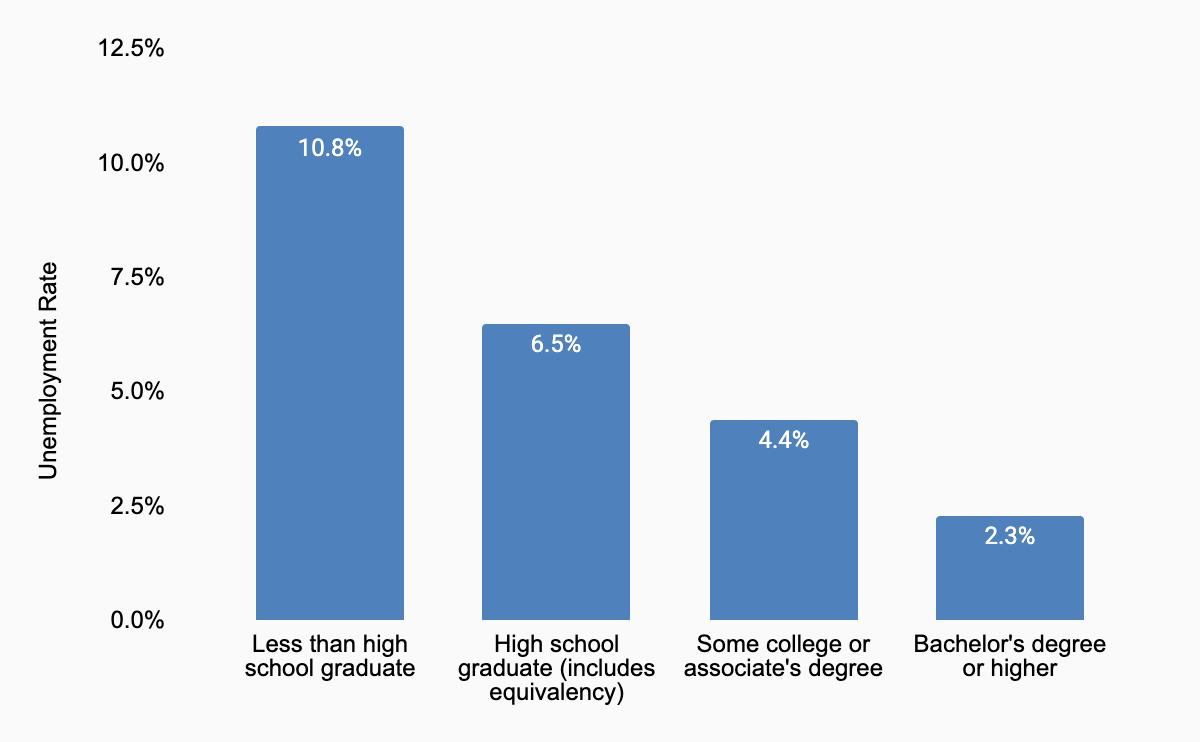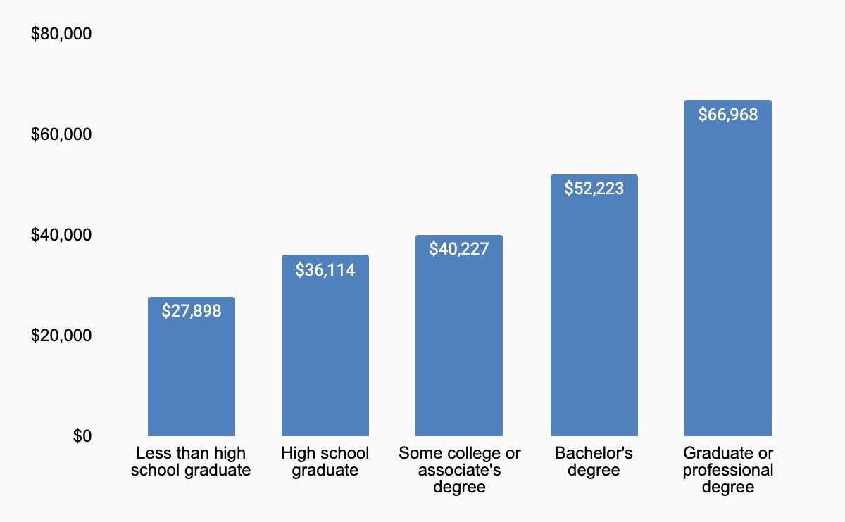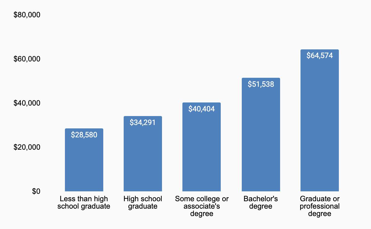 Higher earnings also correlate with educational attainment. Workers with a bachelor’s degree earned $29,000 more in annual wages than those with less than a high school education (Figure 4).