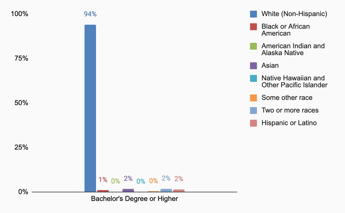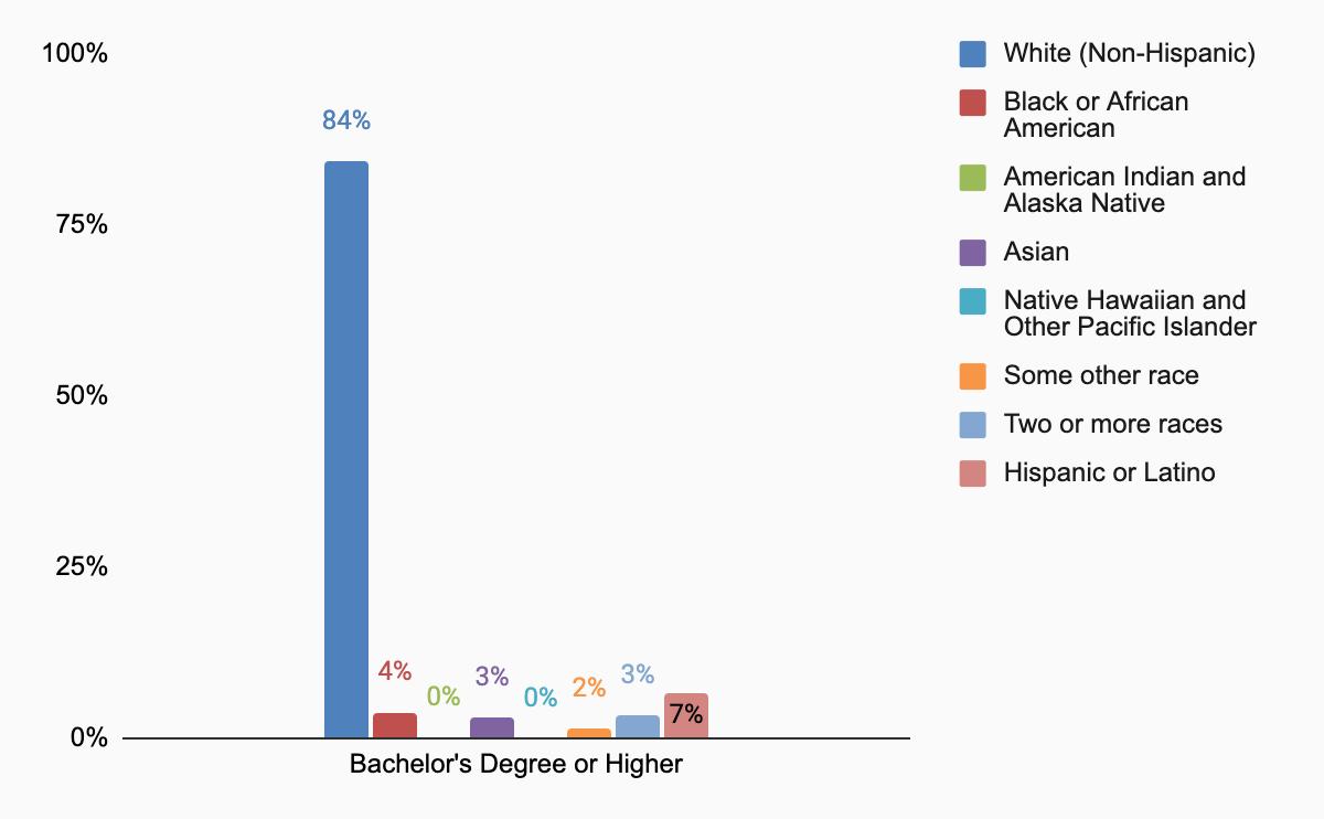 education. Figure 2 shows race and ethnicity by distribution for the Providence metro area in 2020. Of those who attained a bachelor’s or higher, only 5 percent identify as Hispanic or Latino.