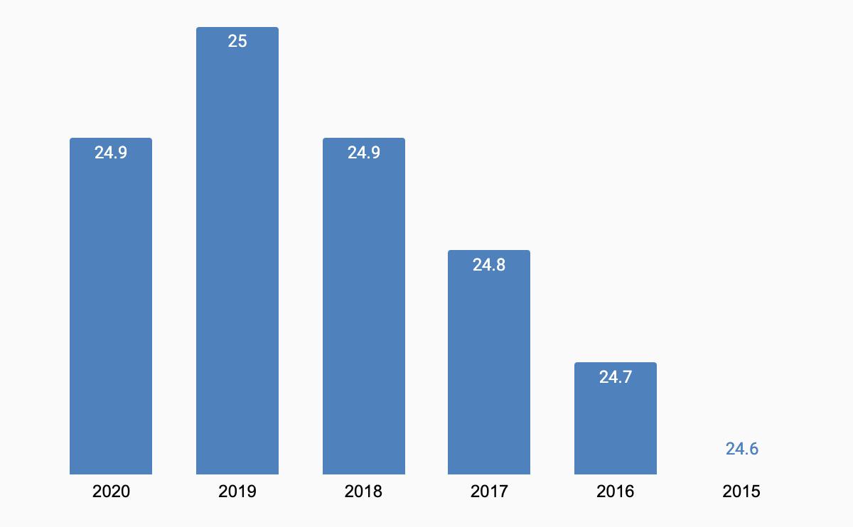 On average, there were 15 times more White (Non-Hispanic) residents than of any other race or ethnicity in 2020. Of the total population, 75 percent of the residents identify as White, 13 percent as Hispanic or Latino, 5 percent as Black or African American and 3 percent as Asian American. The share of Hispanic or Latino and Black or African American residents is slightly lower compared to the state population. In Rhode Island, 16 percent of residents identify as Hispanic or Latino, while 5.5 percent identify as Black or African American.