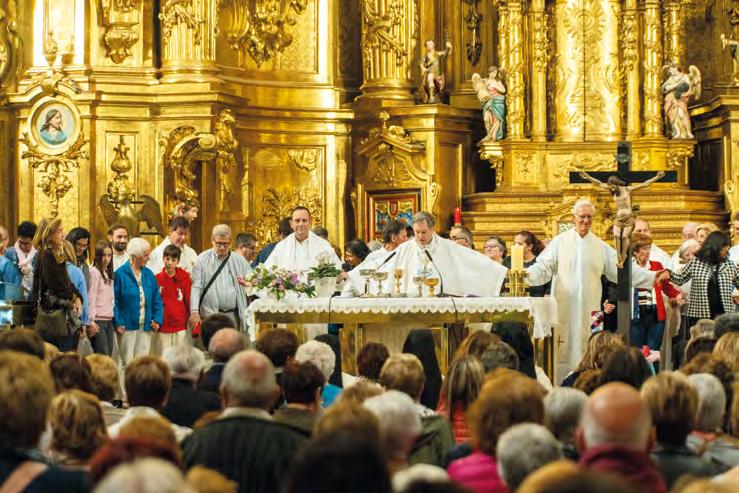 Con gesto sereno y mirada cómplice, nos guio por su casa —nuestra iglesia—, destacando sus bóvedas de crucería, sus más de 18 metros de altura y la historia viva que late en cada piedra. Recordó con humor su viaje a Asia “Bai Asiaraino joan nintzan”— y bromeó sobre las reliquias que viajaron de vuelta a Vietnam, preguntando al obispo Joseba si notó que faltaba algún trozo. Risas que aliviaron la emoción.