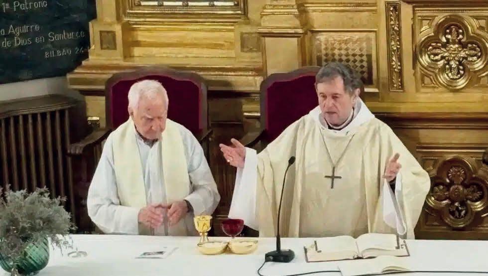 La basílica de Begoña acogió una Eucaristía concelebrada, de Acción de Gracias, en el 85 aniversario de José Luis Achotegui, que fue párroco de la basílica durante varios años, además de vicario territorial y rector del Seminario, entre otros cargos.