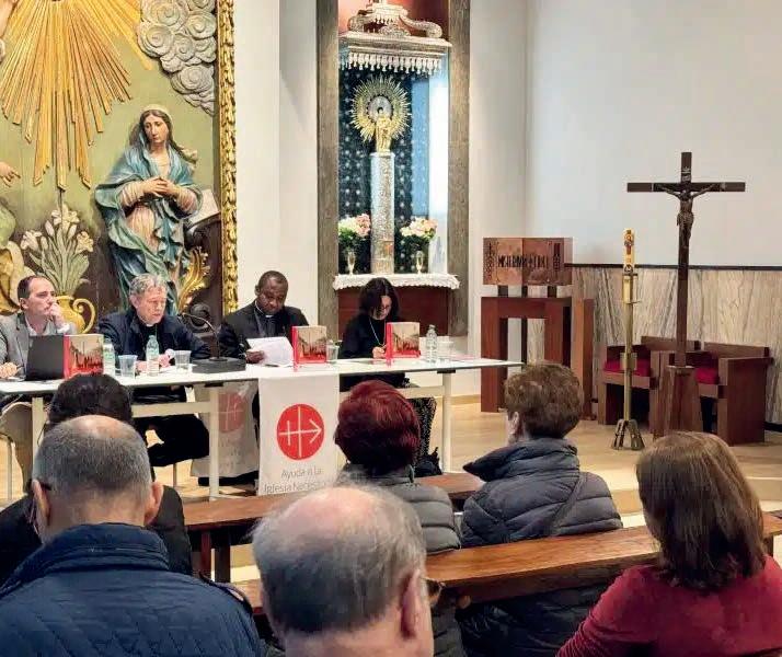 La parroquia Nuestra Señora del Pilar acogió la presentación del Informe Libertad Religiosa en el Mundo 2025, elaborado por la fundación pontificia Ayuda a la Iglesia Necesitada. El acto contó con la participación del obispo, Joseba Segura, el director de Promoción de ACN España, José Fernández Crespo, y el sacerdote nigeriano Patrick Akpabio, quien ofreció su testimonio sobre