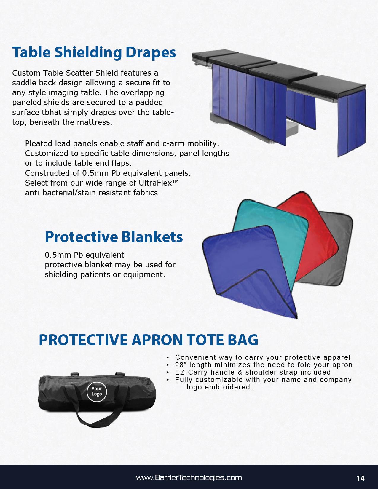 We are excited to introduce our new UltraFlex anti-bacterial stain resistance fabric and our secure shield line of washable aprons and thyroid collars. Our unique UltraFlex fabric protects healthcare practitioners from all types of occupational hazards from being completely impervious to fluids, thus eliminating stains and exposure to hazardous fluids produced during procedures. Our revolutionary secure shield core material offers health care practitioners the unique opportunity to launder their protective garments and eliminate harmful bacteria that is often produced during clinical procedures.