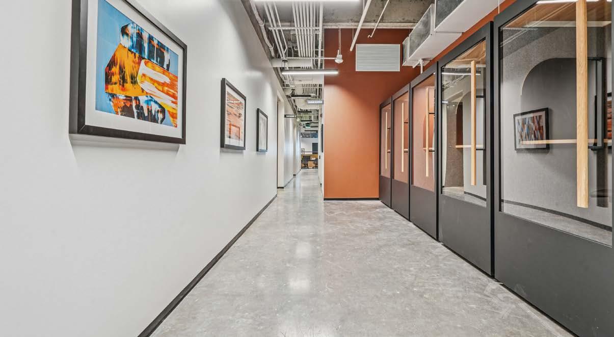 Spanning 25,811 square feet, this Type 1-A office upfit combines highend finishes with thoughtful functionality. Expansive glass office fronts, nearly 1,000 linear feet, flood the space with natural light, while insulated theater-grade tiles ensure a crisp, acoustically balanced environment. Rich textures from wallcoverings tilework add depth and sophistication throughout.