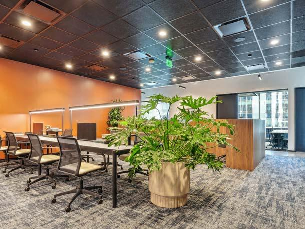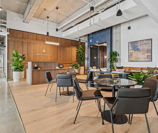 Every detail supports Industrious’ signature experience: Power and data in all offices for seamless connectivity, 16 custom phone booths for privacy, and wireless locksets for secure, touch-free access. Kitchens and lounges feature stainless steel appliances, reinforcing the elevated feel members expect.