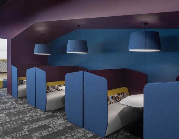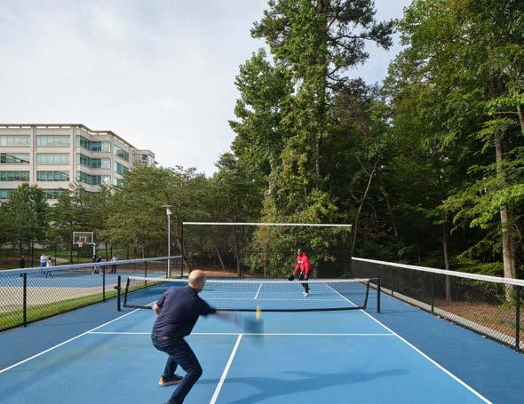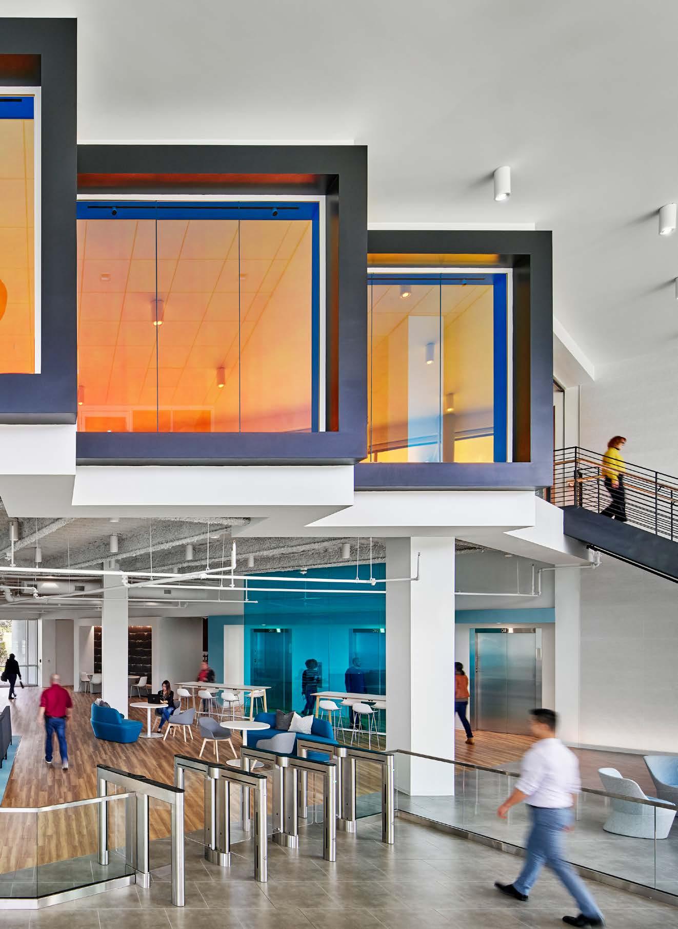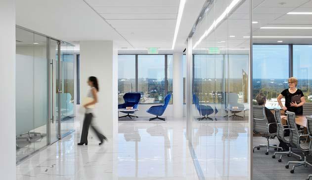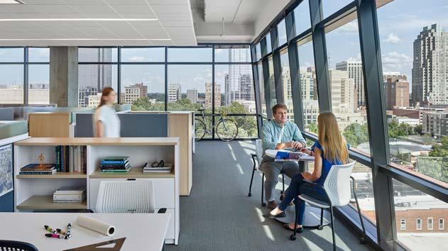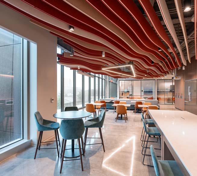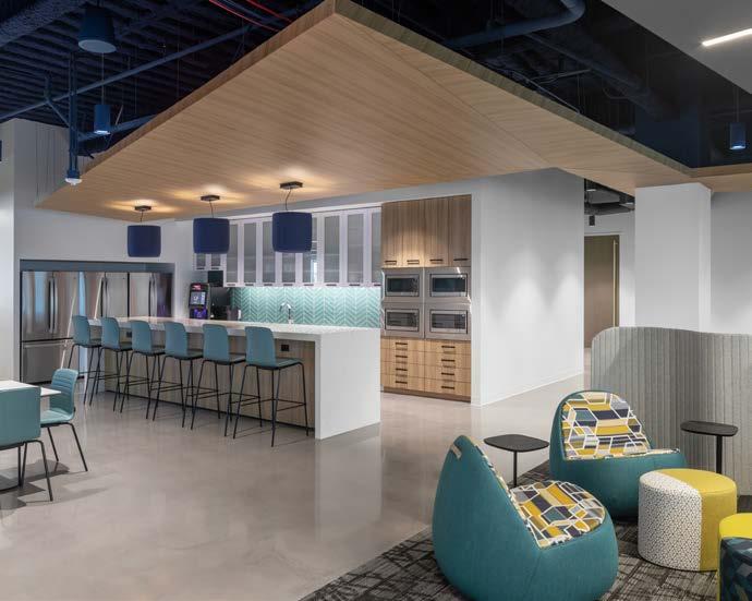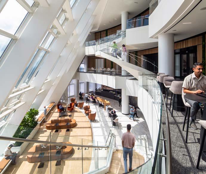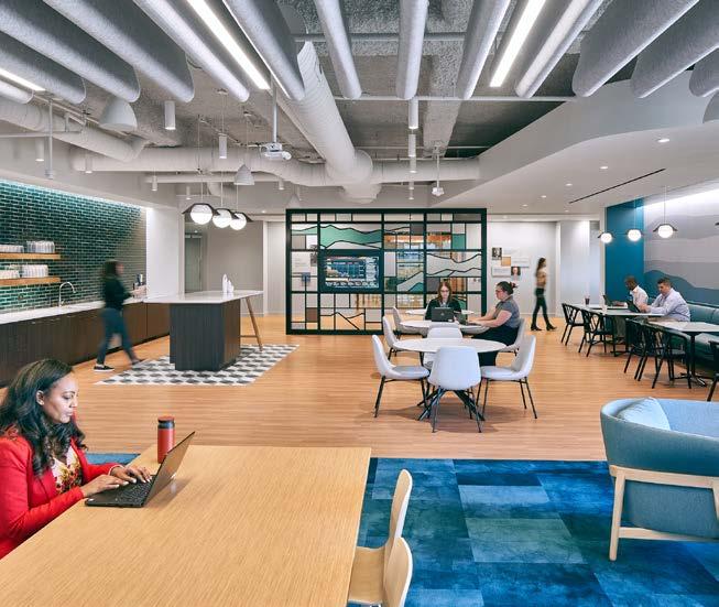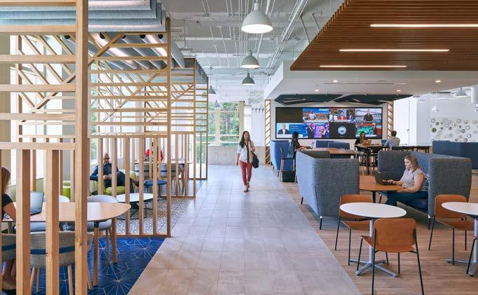 TIAA underwent a significant renovation of its Charlotte campus as part of a company-wide modernization initiative to provide a state-of-theart facility for employees to work, play and thrive. Spanning across six buildings and encompassing nearly one million square feet, this renovation introduced the company’s Work for My Day workplace strategy aimed at developing a flexible, all-inclusive environment that accommodates the varying ways of working.
