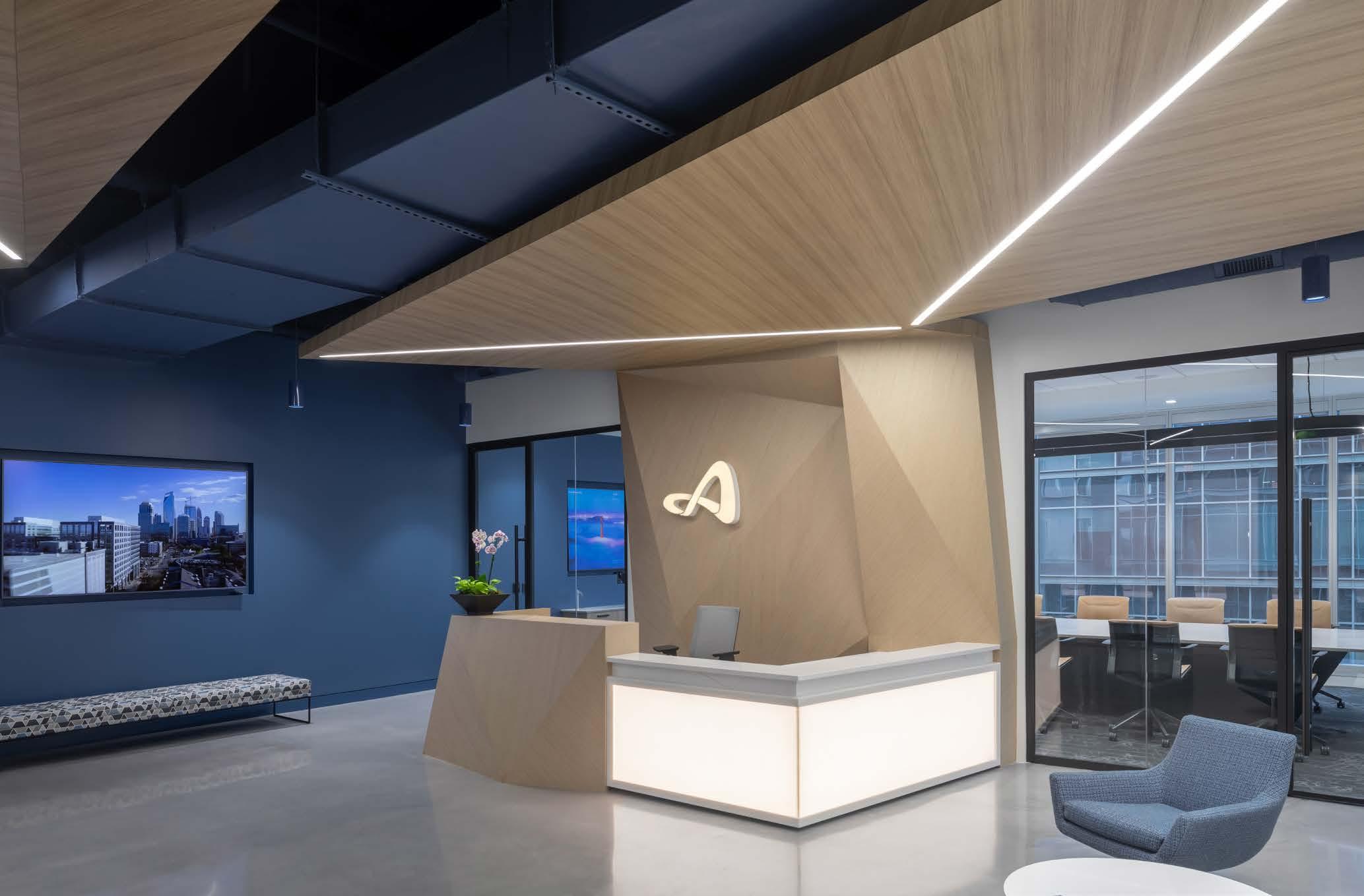Armstrong Transport Group relocated its global headquarters from North Charlotte to the heart of South End. This 24,405 square-foot, first-generation upfit is a dynamic and energetic workplace created to excite employees, welcoming them from their old space in the suburbs to their new home in the city.