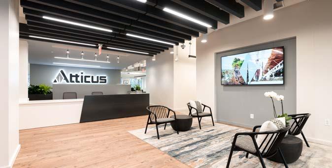 It’s no secret that a company’s office can be your best marketing tool for attracting and retaining talent. Atticus took this seriously by designing their new headquarters to be a space where employees could work and thrive while also showcasing the company’s care and attention to detail to their clients, suppliers, and potential employees. With onsite amenities that range from a sauna and outdoor grilling station to collaborative workspaces and a full-fledged fitness center, the “Atticus energy” can be felt as soon as you walk through the doors.