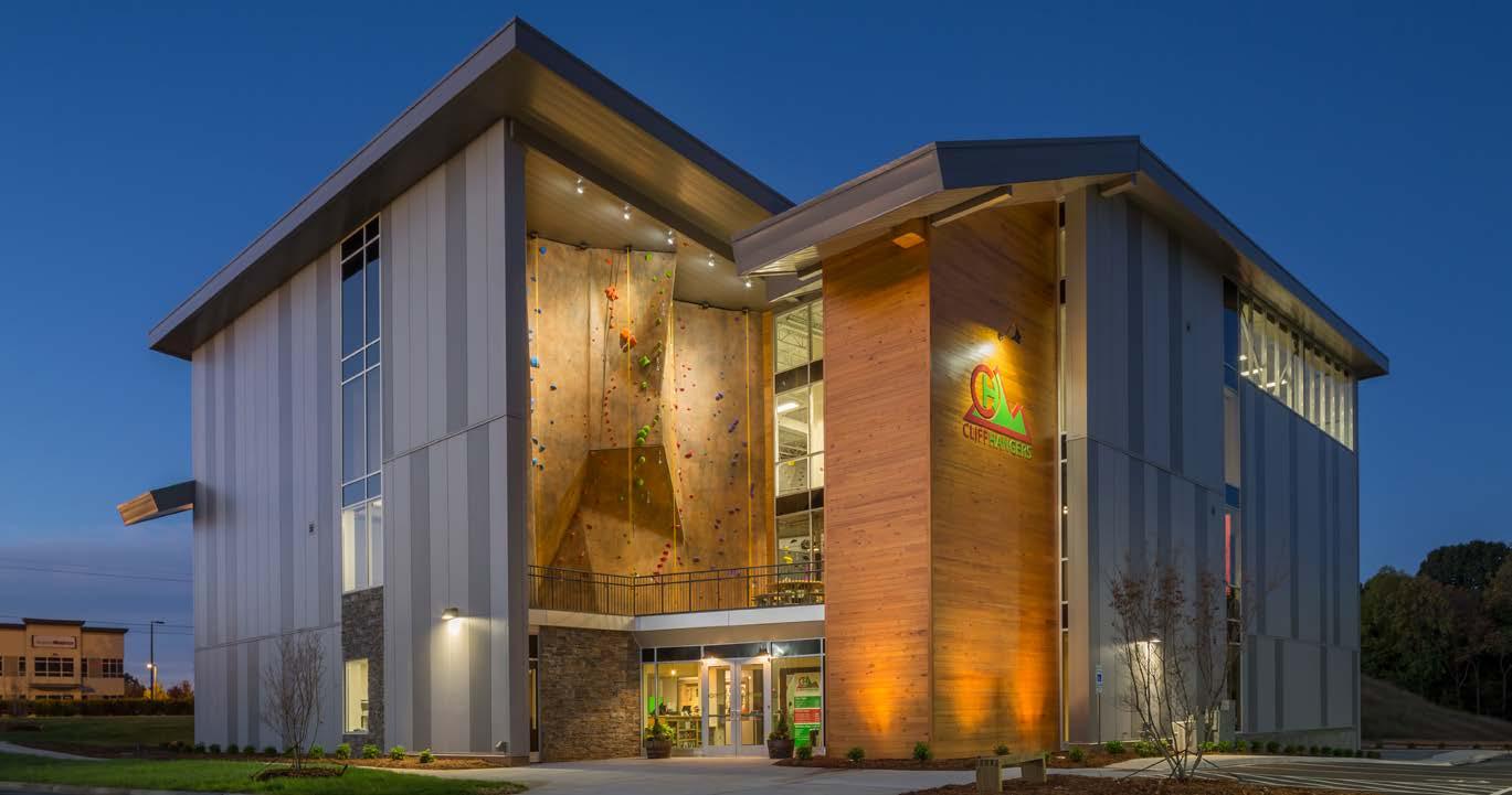Barringer provided full preconstruction and construction management services for this award-winning out-of-the-ground, three-story, steelstructured indoor rock climbing facility. The 20,000 square foot mountain-inspired structure was created using insulated metal panels, curtain wall and engineered stone facade, while the interior includes a bar area, retail merchandise store full of climbing gear, fitness center, yoga rooms, locker rooms, and multiple climbing walls. The bright colors and unique amenities welcome customers of all ages for both entertainment and relaxation.