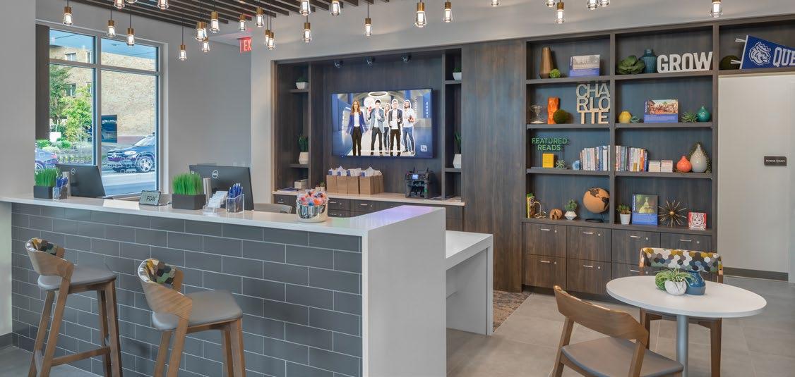 Fifth Third Bank’s expansion into the Southeast region has paved the way for a next-generation banking design standard focused on digital capabilities and collaborative spaces. Retail banks that we once knew are no longer – teller counters are replaced with smaller transaction bars while flexible, cafe-style meeting concepts with comfortable, casual seating and coffee bars make guests feel welcome in the bank. These bank branches are also fully equipped with high-tech AV equipment which allows staff to maintain privacy while easily presenting information to clients.