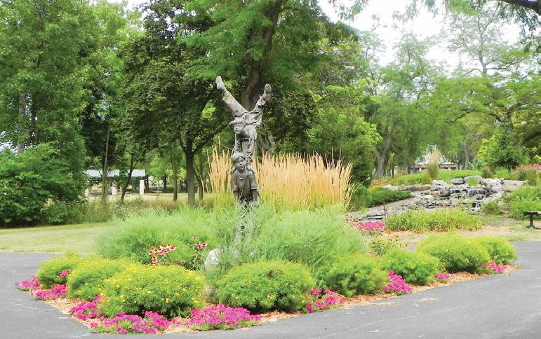 Columbus Park features an open play area, playground and pond.
