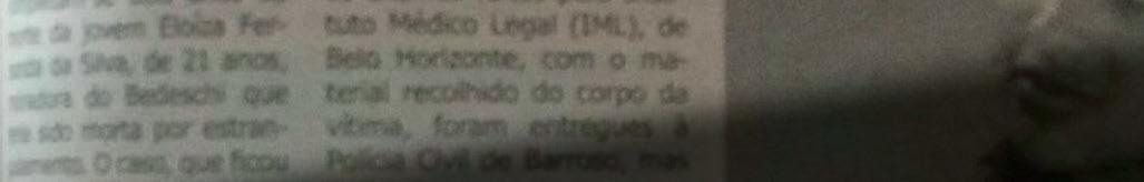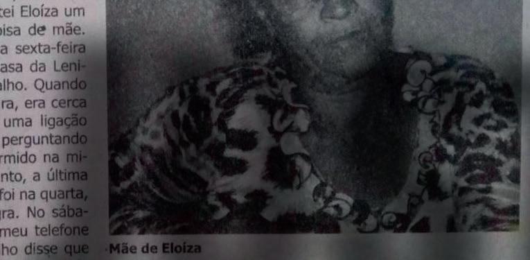 Naquela quintafeira, a jovem Eloíza encerrou mais um expediente de trabalho, mas não conseguiu retornar para casa. “Na quinta de manhã, por volta das 11h, recebi uma ligação da minha sogra perguntando se Eloíza tinha dormido na minha residência, a partir dalí, meu mundo acabou”, relata Neide. Na internet, ainda que limitada naquele tempo, um movimento à procura da jovem se iniciava e cerca de dois dias depois, na manhã do sábado (22), o corpo de Eloíza foi encontrado na Rua Deudes José de Matos, a Rua da Cadeinha, em um lugar de mata fechada, atrás do Hospital de Barroso, próximo ao leito do Rio das Mortes.