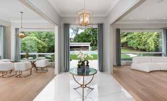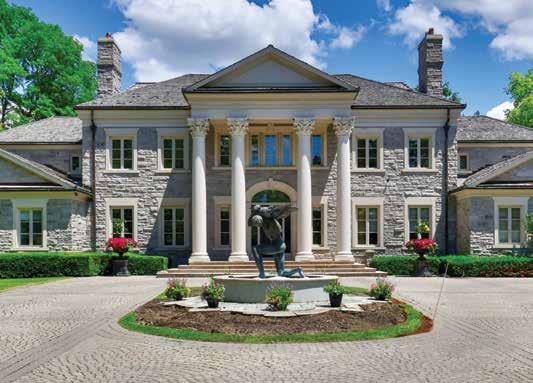 Gated stone estate with 90’ frontage, rich and warm interiors and elegance at every turn. Sprawling chefinspired kitchen overlooking gardens and open to breakfast area and family room.. Grand dining room. Opulent primary with ‘His’ and ‘Hers’ ensuites and boudoir. Lower level with theatre, gym, wet bar, rec room and nanny room. Private grounds with lush landscaping, pool and terraces.
