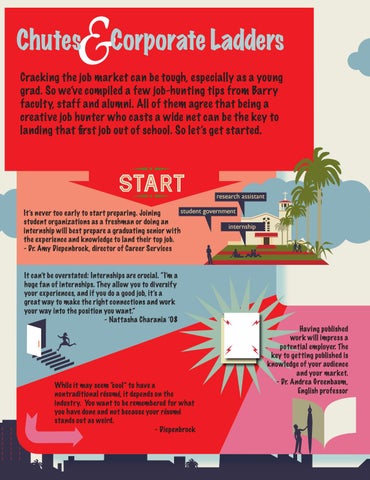 It can’t be overstated: Internships are crucial. “I’m a huge fan of internships. They allow you to diversify your experiences, and if you do a good job, it’s a great way to make the right connections and work your way into the position you want.” - Nattasha Charania ’08