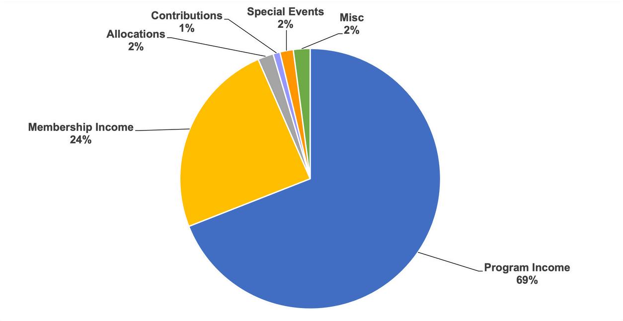 Ourprimarysourceofrevenuecontinuestobeprogramincome.Activeengagement isreflectedintherevenuegrowthoverlastyearof4.75%(lessCOVIDrelatedfunds). Membershipcontinuestogrowandisexpectedtoexceedbudgetby2%. TotalRevenue