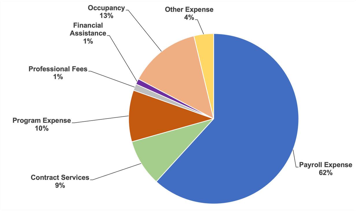Payrollexpensesandcontractservicesareourlargestlineitems.Fulltime,part timeandcontractstaffdriveoursuccessandreflectthehighdemandofour programs.Attractingandretainingqualitystaffhasbecomemorechallenging asthecostoflivingcontinuestoclimb.Whileexpensesareprojectedtobe2% overbudget,theyaretrackingtobe6%overlastyear'sactuals,reflectingboth programgrowthandtherisingcostofdoingbusiness.