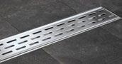 L’élégance de ce caniveau impressionne grâce à son effet perlant. La pente est discrète et assure un drainage optimal sans taches d’eau séchées.