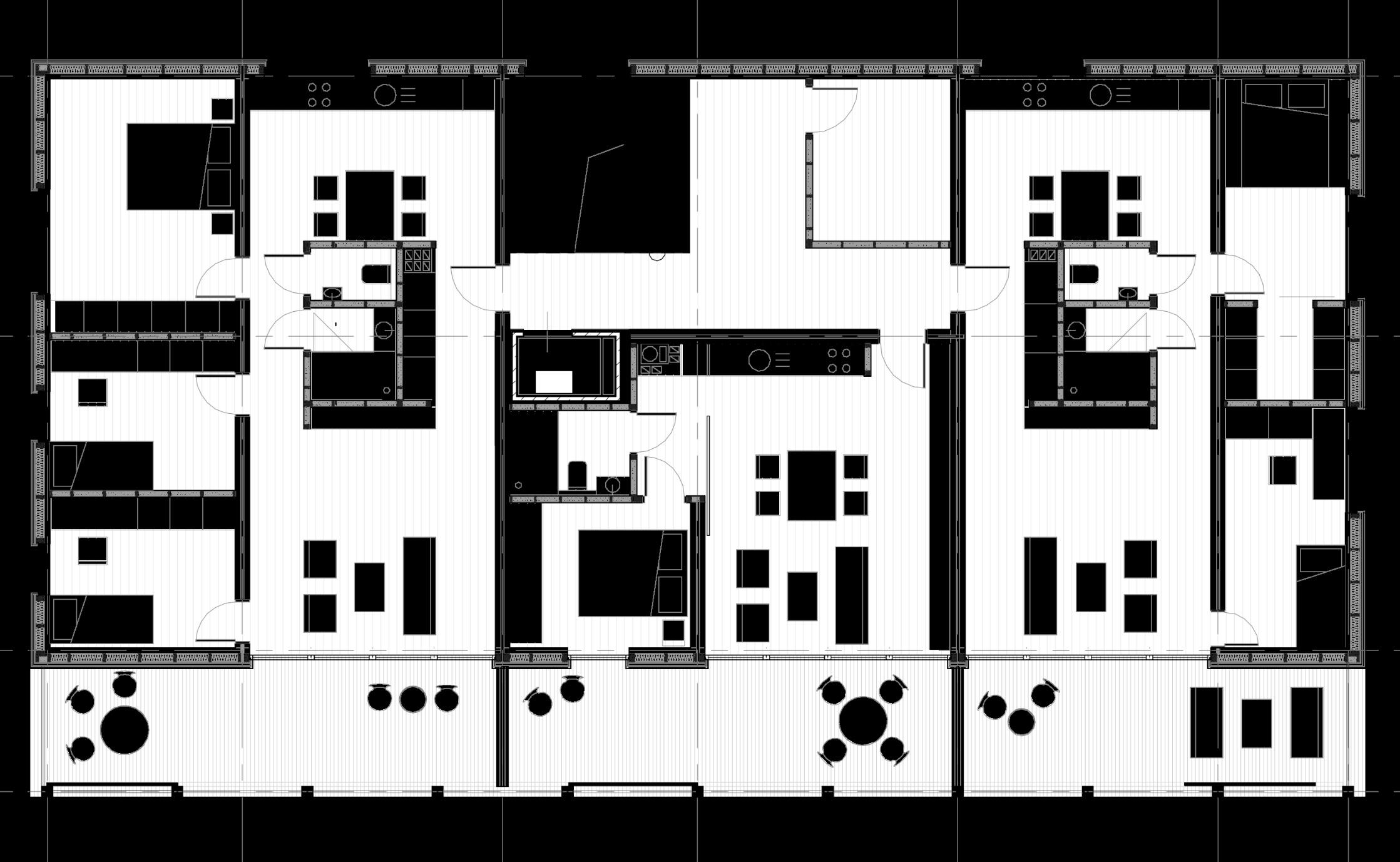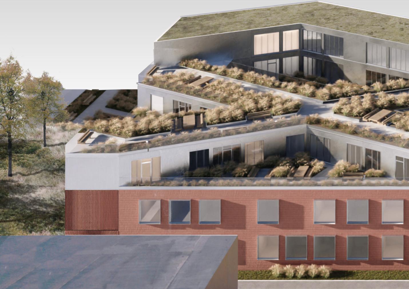 Dachyzaprojektowanojakoczęśćwspólnąz możliwościąstworzeniaogródkówwarzywnych. Ostatniakondygnacjapokrytajestzieleniąekstensywną.