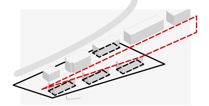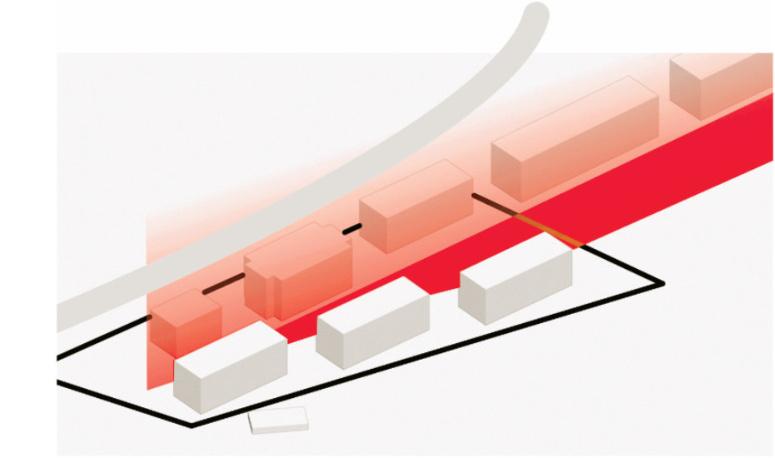 Obiektpołożonyjestnadwóchodrębnychdziałkach,cowpłynęłonaszeregdecyzjiprojektowych. Zaprojektowaneobiektypołączonołącznikiemnaddrogąpożarową,którąnależałozachować,co pozwoliłotonaciągłośćwyższychkondygnacji.Formabudynkuodzwierciedlajegopodział funkcjonalny,zpodziałempoziomymnaczęśćpublicznąimieszkalnąorazpionowymnafunkcje usługoweimedycznewynikającezwydzieleniadziałek.Drogapożarowaniejestdrogądojazdową więcjestużywanatylkowsytuacjachawaryjnych.