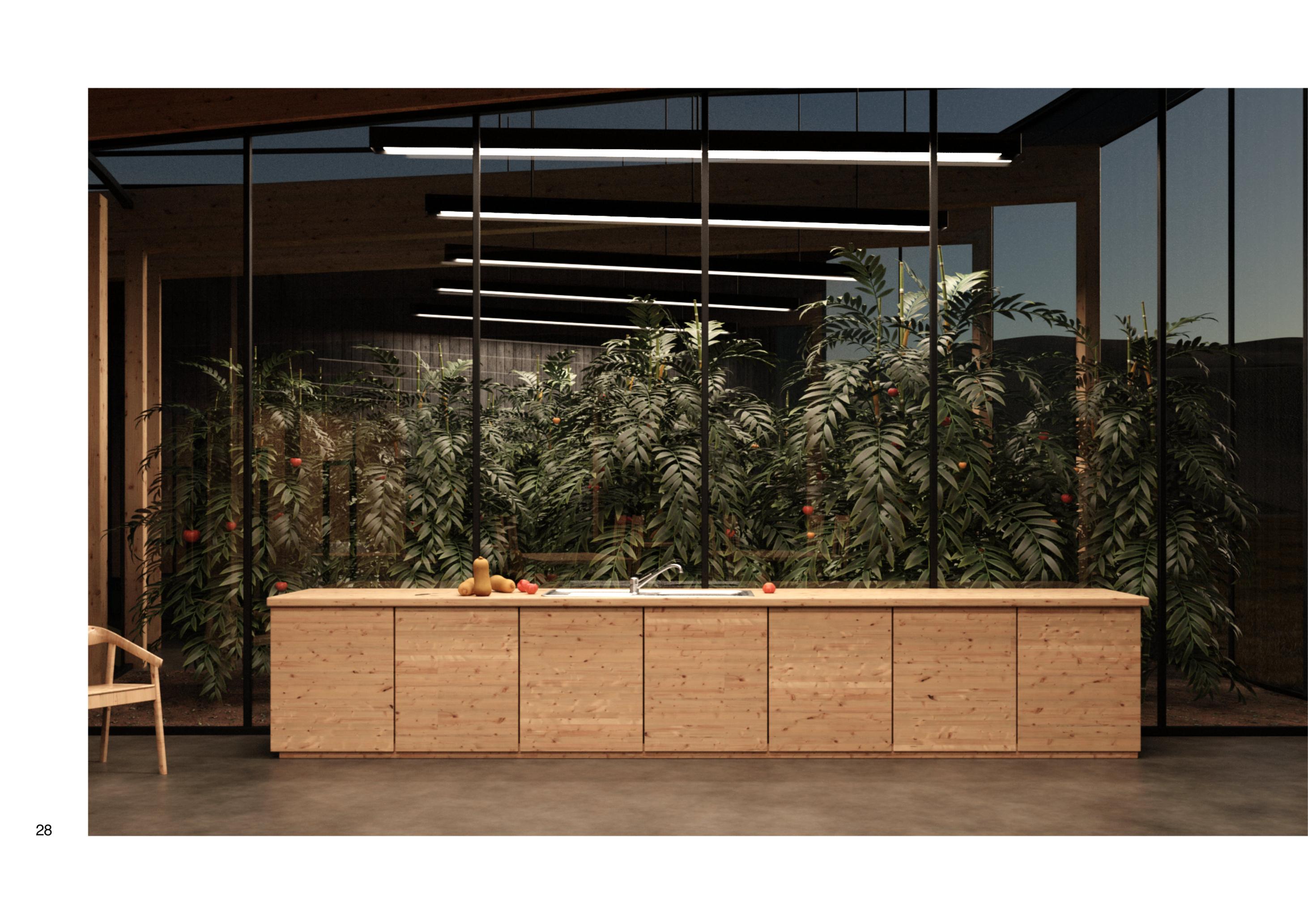 Wbudynkachzastosowanokonstrukcjęzdrewnaklejonego(CLT). Powodemtakiegowyborubyłopodejściedobudownictwaskupiające sięnaświadomościjegowpływunaśrodowisko,atakżeplusyw postaci krótkiegoczasubudowy,zmniejszeniawielkościekipybudowlanej, użyciaelementówprefabrykowanych,małejuciążliwościplacubudowy orazatrakcyjnościdrewnapodwzględemużytkowania.Tworzenie drewnianychkonstrukcjiprzyczyniasiędokształtowaniazdrowego, przyjaznegonaturzeorazużykownikomśrodowiskamiejskiego.
