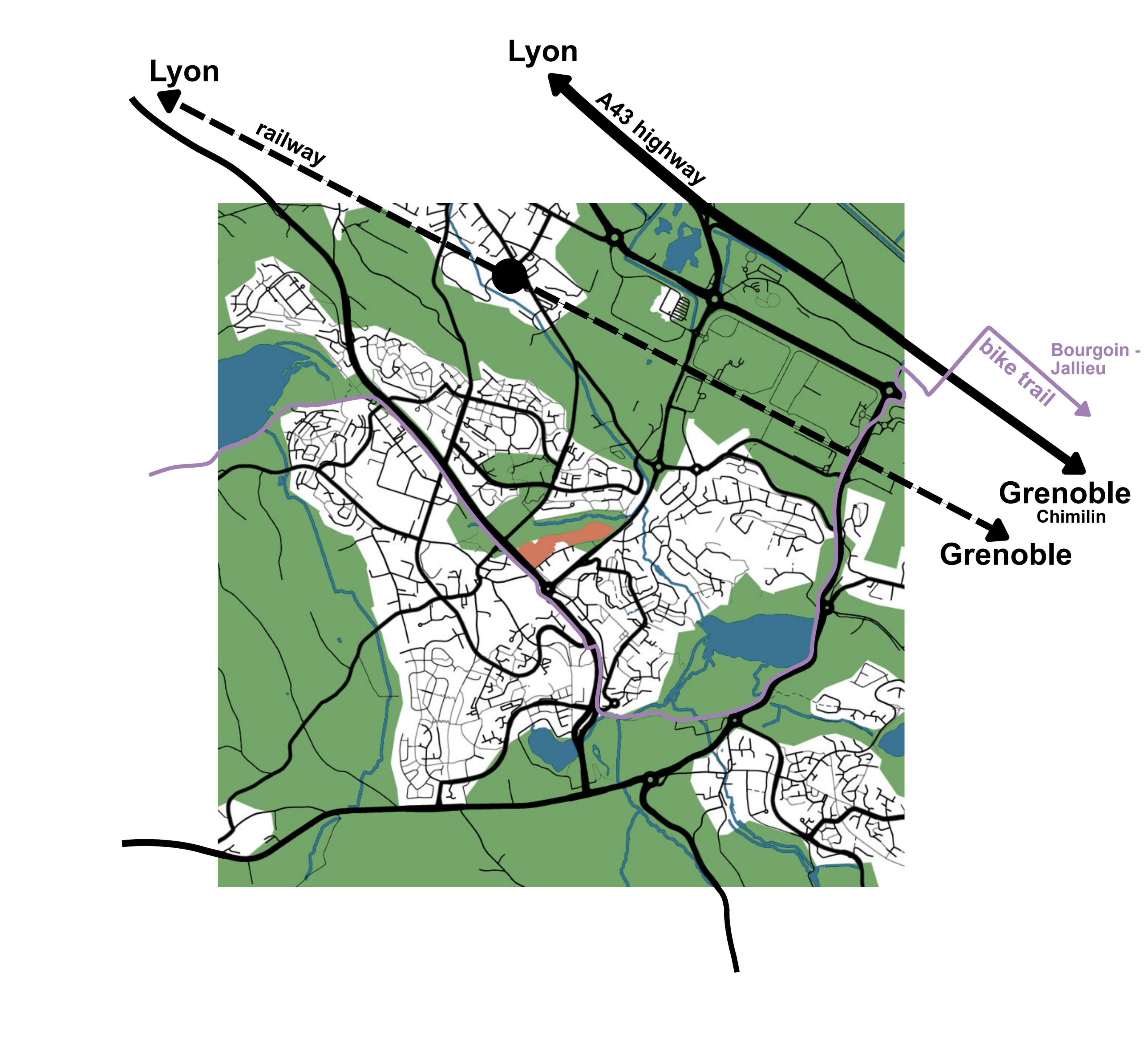 Theplotissurroundedbyextensive,mostly single-familyhousingarchitecture,whichis notagoodexamplefortheregion.Instead, wedrawmostinspirationfromlocal architectureandhistoricalvillagecentre.