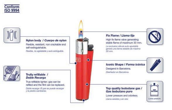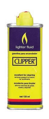 33 papírků v knížečce Papírky 110 x 44 mm Gramáž 13 g/m2 Ultra slabý hořící papír. Široká plocha na balení s maximálním komfortem. Kvalitní produkty renomované značky. Jasně odlišitelné produkty, moderní design. Vynikající poměr dobrá cena x výborná kvalita. 8 412765 573 12 5 8 412765 8 229 57 8 412765 7023 72 8 412765 131 00 4 8 412765 8234 80 8 412765 789 68 7 84198686 84197153 23381200 Plyn Clipper 100 ml 12 ks / balení 23381100 Plyn Clipper 300 ml 12 ks / balení 23381300 Benzín Clipper 133 ml 24 ks / balení Do zapalovačů je nutno používat doporučené náplně, aby tak byly dodrženy vysoké nároky na čistotu a nedocházelo k ucpávání trysek. PŘÍSLUŠENSTVÍ K ZAPALOVAČŮM