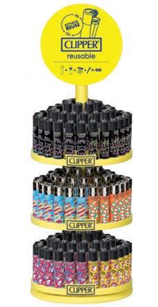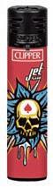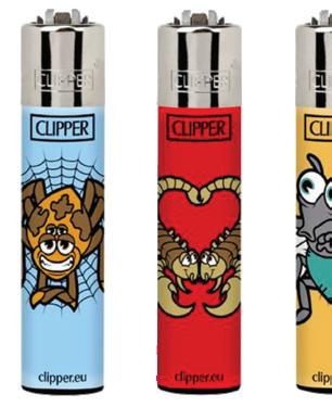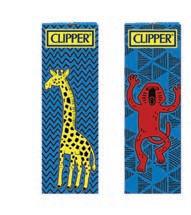 Klasický zapalovač Clipper, výška 6,3 cm. Kovové tělo, různé potisky. Prodejní display. 30 ks / balení