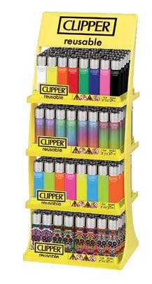 Klasický zapalovač Clipper, výška 7,4 cm. S piezo zapalováním. Prodejní display. 24 ks / balení