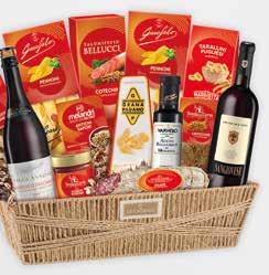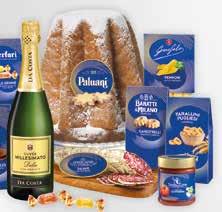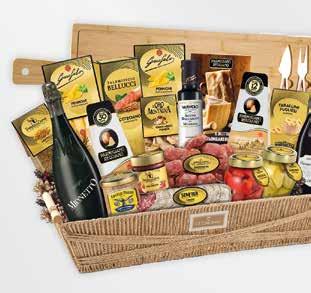 Dárkové koše nabízejí pestrý výběr kvalitních italských specialit, mezi které patří tradiční cukrářské výrobky jako vanilkové či máslové dorty, pandoro, cantucci a různé druhy čokoládových pralinek, sušenek a ovocných želé. Nechybí ani výběrové delikatesy včetně nugátu, sušených hub, balzamikového octa, omáček na těstoviny či farmářského salámu. Součástí jsou také těstoviny z tvrdé pšenice, sušená čočka a další typicky italské suroviny.