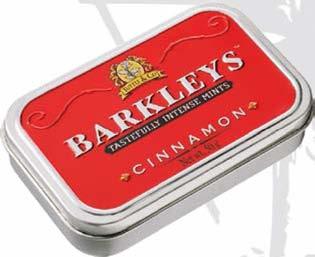 Značka pochází ze severní Ameriky a my Vám ji dovážíme z Nizozemí. Produkty Barkleys jsou po celém světě populární pro svou nespornou kvalitu. Bonbóny a dražé jsou vyrobeny z přírodních příchutí a barev (kromě skořice). Skořicová příchuť obsahuje přírodní barvivo: červenou řepu a karoten, za účelem mírné načervenalé barvy. Barkleys neobsahují deriváty z mléka, vajec a sóji, ani pšeničný lepek. Bonbóny a dražé Barkleys vynikají plnou vůní, ale především osvěžující chutí. Balené jsou ve stylových kovových krabičkách.