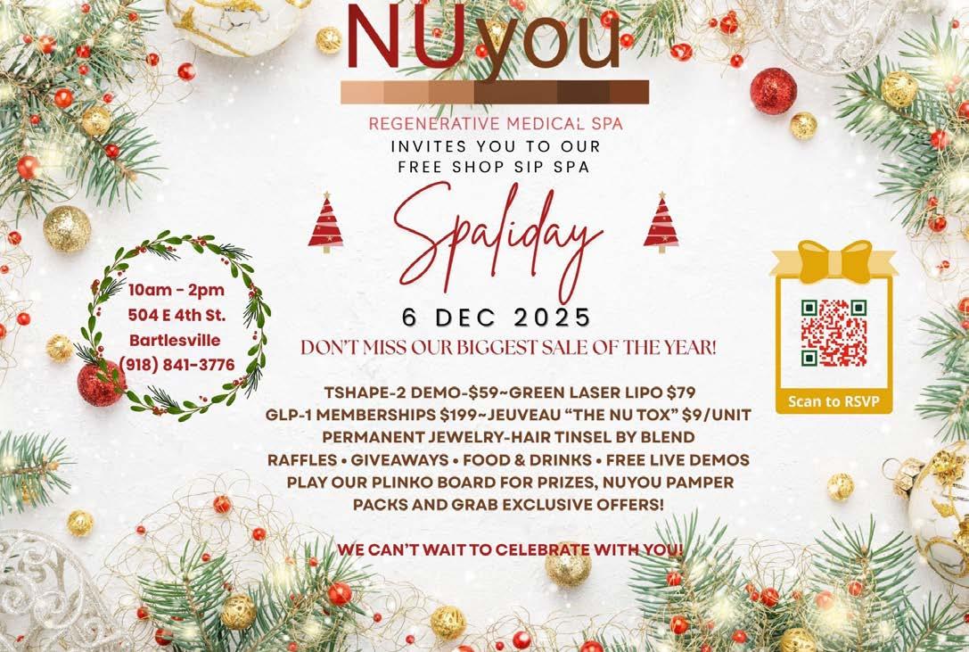 Bartlesville’s wellness scene is growing and one contributor is NUyou Regenerative Medical Spa, the newest addition to the NUjoint family. With its blend of cuttingedge treatments, medical expertise, and a warm, approachable atmosphere, NUyou is quickly becoming a favorite stop for anyone looking to rejuvenate, recharge, or simply feel a little more like themselves.