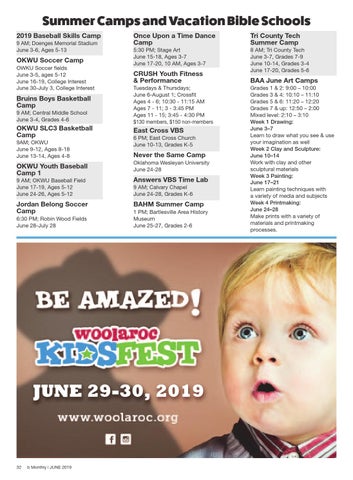 9 AM; OKWU Baseball Field June 17-19, Ages 5-12 June 24-26, Ages 5-12