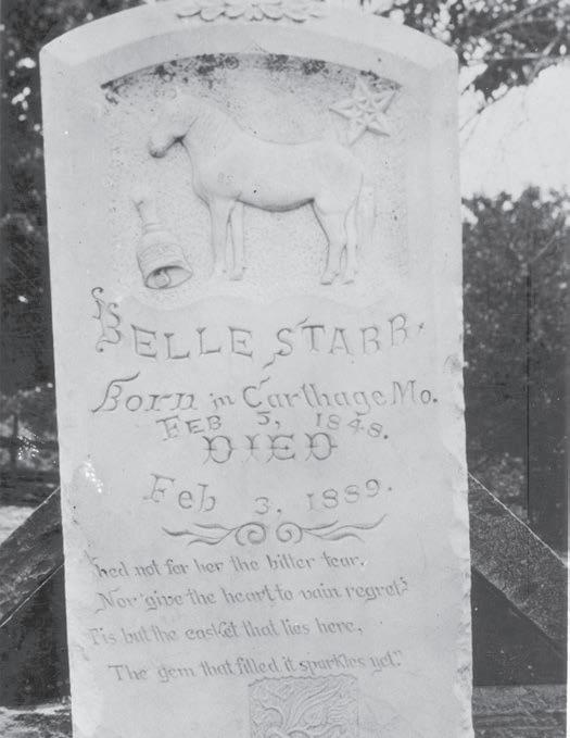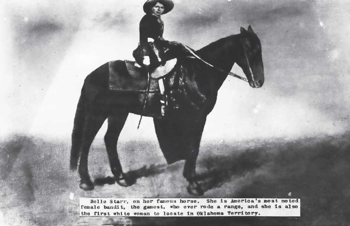 have known the James brothers. Quantrill was a family friend who often dined with the Shirley family. It’s no surprise, then, that Myra Shirley fell in love with a man she called a “dashing guerilla,” Jim Reed. They married and had two children, but Jim Reed struggled to lay aside his lawlessness and introduced his wife to members of the Younger Gang and Tom and Sam Starr. Eventually, a bounty of $4,000 was placed on Jim Reed’s head, leading to an acquaintance shooting him in 1874 to claim it. Myra Reed quickly married Sam Starr, a Cherokee who lived in Youngers’ Bend, near present-day Eufaula, becoming the infamous Belle Starr.