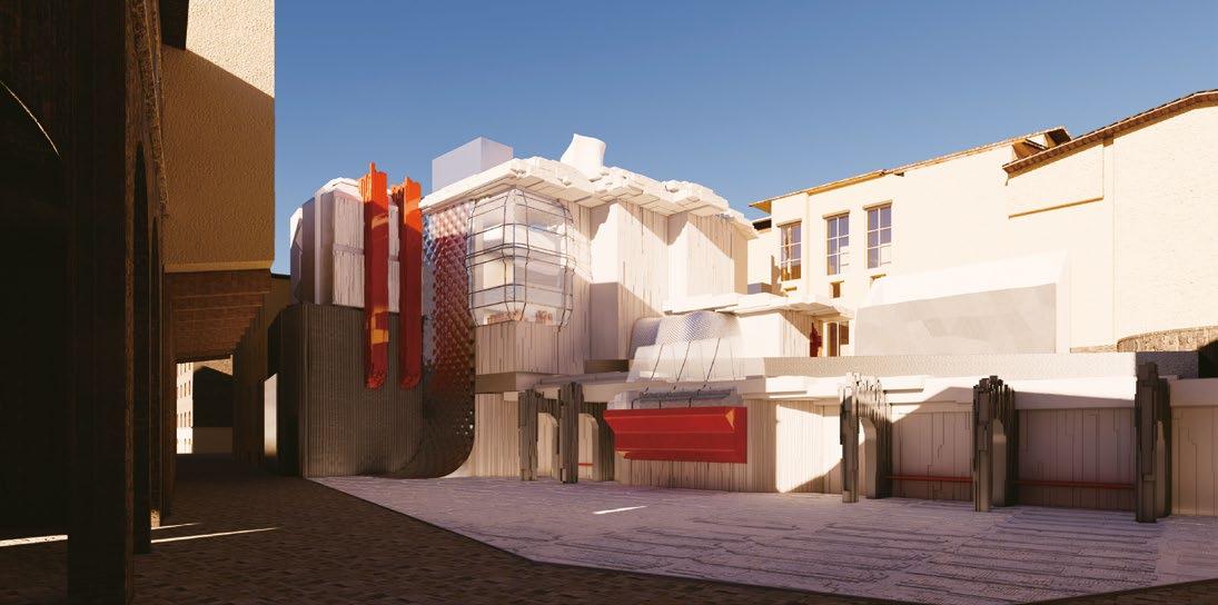 21.22–21.23 Yufei Cheng, Y3 ‘El Gòtic Plays Itself’. Situated in the Gothic Quarter of Barcelona, this project proposes a centre for Catalan theatre and craft as an ode to the theatrical essence of the site’s fabric. Inspired by the Spanish affection for theatricality and festivals, which transform ordinary street life into stage sets, a bespoke script documents and recomposes sequences of theatrical plays, festivals and urban fabric. This script translates these elements into stages of digital manipulation, which shape the building in a processional form, resulting in the concept of ‘the city as a stage and the stage as a city’.
