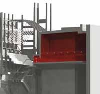Fig. 9.14 Abigail Portus Y3, ‘Performance Centre’. The building is a performance centre and social hub, nestled alongside the Lapa aquaduct which accommodates a tram stop, between the Santa Teresa favela hillside and the main city. It provides an open community space with a central paraboloid theatre that projects an optical illusion of activity in the centre up to the floor above. This provides a virtual viewing plane, so visitors can benefit from a ‘secondary’ performance. Fig. 9.15 Ivo Tedbury Y3, ‘Circuit Atlantica’, Formula 1 Track and Pit Building, Copacabana Beach. (See Fig 9.2) Fig. 9.16 Rosa Prichard Y2, ‘Camdomble Church’. The Candomble ritual steps are translated into experiential spaces within the building. The two façades address contrasting neighbourhoods – one poorer and largely Candomble believers, and one wealthier and largely