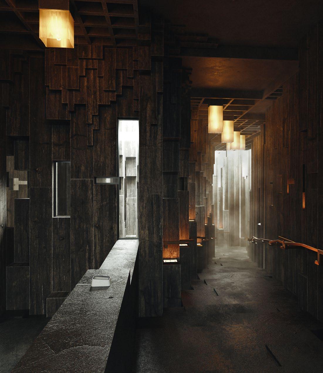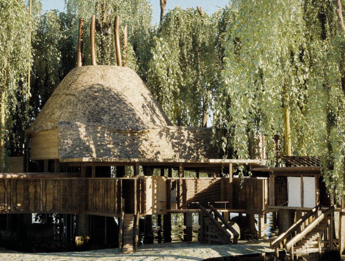 9 Tim Deleu, Y2 ‘Longhouse of Memory’. Sited along the shore of Seurasaari, Helsinki, the project takes inspiration from Viking longhouses and ancient Finnish drinking rituals to create a space for reconnecting through spirit-making and cultural memory.