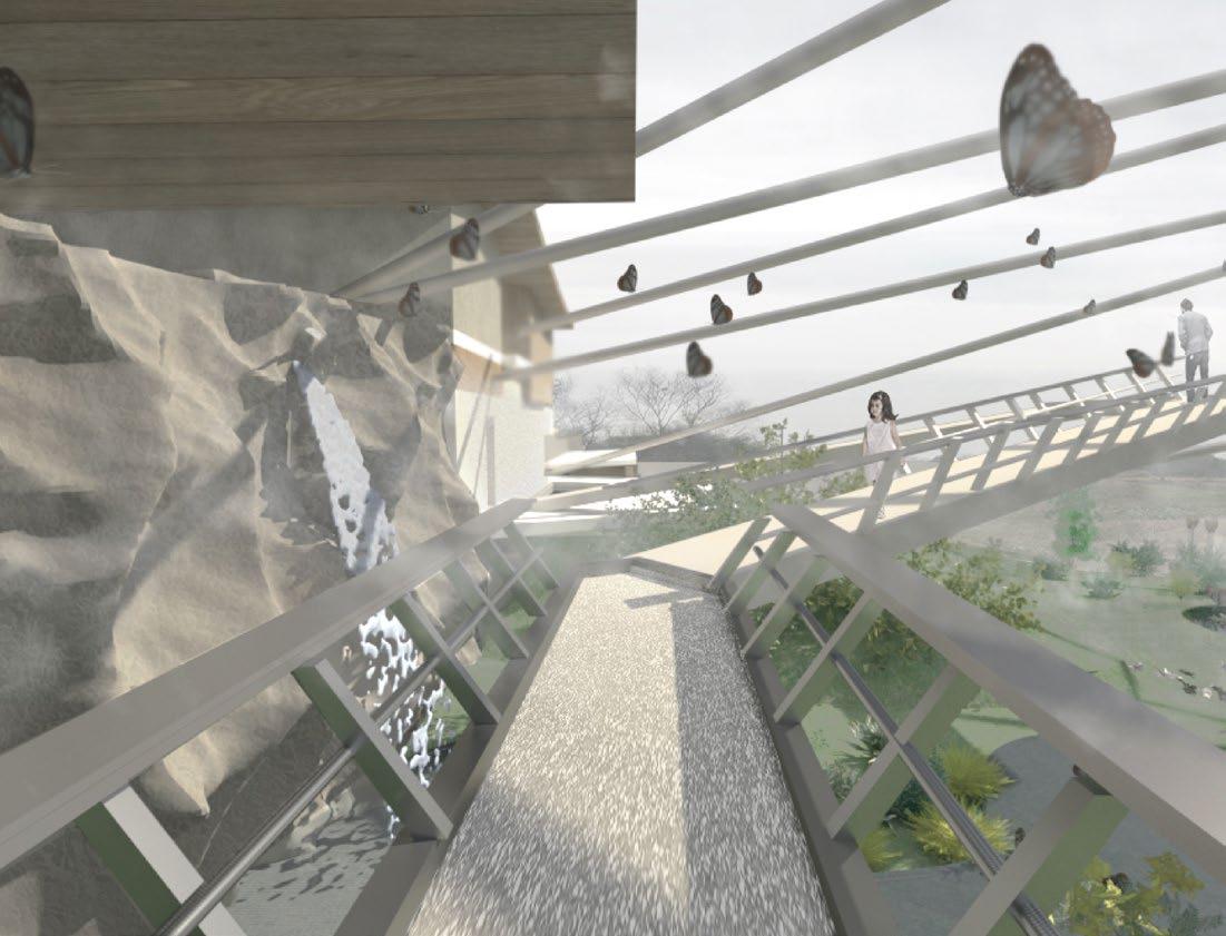 characteristics and movements of Capoeira, a popular game and Brazilian maritial art. The key qualities of Capoeira are constant motion, balance and speed. Through a series of interactive prototypes the final device replicates the fundamental movement of Capoeira known as ‘Ginga’, activated through players interaction with light sensors. Fig. 9.8 Yin Fung Chan Y3, ‘Desalination Plant in Rio de Janeiro’. The building acts as an environmental model responding to two major conditions of the site: water and waste pollution in Botafogo Bay. Rubbish floating on the water surface is collected by boats for recycling and generating electricity with a Biomass boiler. The energy produced from the waste collected is then used to desalinate water from the bay providing fresh water for visitors. The systems and