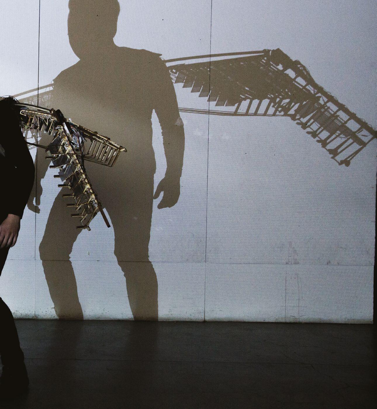 natural landscape. The building also provides a public tourist jetty with cafe and viewing platforms allowing visitors to experience the landscape beyond. Fig. 9.13 Ernest Zhi Heng Wang Y2, ‘The Samba Rhythm Machine’. The machine’s performance incorporates various elements of Samba dance and music. Like a Samba drum bateria, the Samba Rhythm Machine is controlled by a Mestre (band conductor). A Kinect reads hand movements and translates these readings into motor movements, moving the device’s components and creating multiple performances akin to the carnival in Rio.