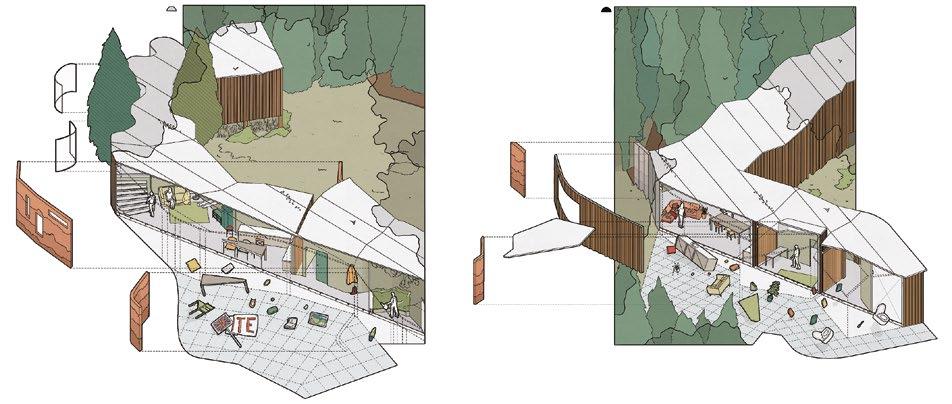 9.12 Marisa Lau, Y2 ‘Merwe-Vierhaven Recycling Arts Centre’. This project is a hoarding hub based in Rotterdam, collecting waste from art exhibitions and festivals and transforming it into new artistic creations. The building’s carefully designed studio spaces provide room for the community to create, collaborate and learn. The recycling centre is designed to constantly adapt to