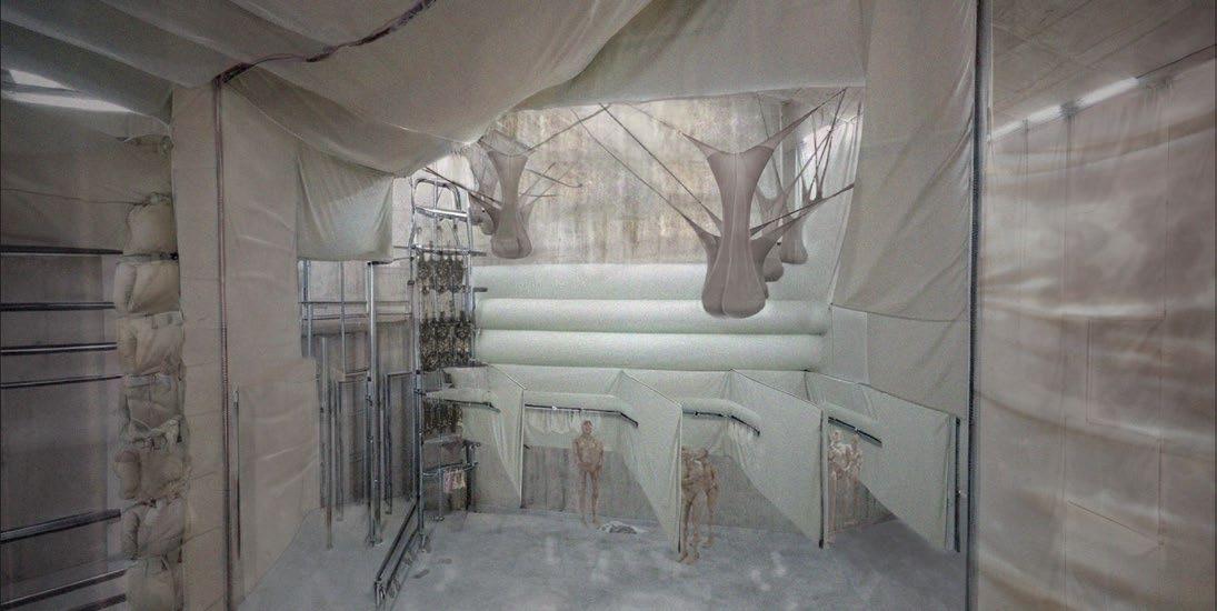 by the 2012 Olympic developments. Fig.9.8 Alexandria Anderson, Y3, Plastic Surgery Clinic, São Paulo. The project addresses the increasing demand for plastic surgery and the strive for body perfection in Brazil. The proposal contains short, medium and long stay facilities and revolves around the concept of ‘beauty and the beast’. The clinical interiors are augmented with a series of devices that control users’ perception of space from light to dark, with apertures and mirrors which contrast with the surrounding road, rail and artificial river that makes up the urban infrastructure.