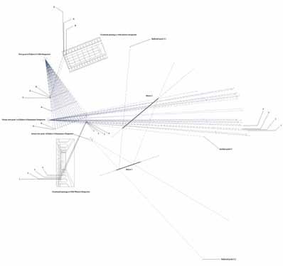Fig. 9.18 Claire Haugh Y3, ‘Orchidarium’. Woven into the grid of an old derelict hotel in the mountains outside of Rio de Janeiro’s city centre is the Orchidarium. A botanical gardens for Brazil’s native orchids, seed store and research facility, the project not only provides new jobs for residents within the local Canoas favela but also becomes the new outpost for the Darwin Initiative based in Kew, England. At night the building’s façade is visible across the city as three dimensional images are projected onto its wires. Fig. 9.19 Marcus Cole Y3, ‘Reification of Data’. Fig. 9.20 Marcus Cole Y3, ‘The National Institute of Data: Analogue & Digital Archive’. The National Institute of Data forms part of a speculative government scheme providing the first steps towards a technologically independent Brazil. Its purpose is to provide a platform for